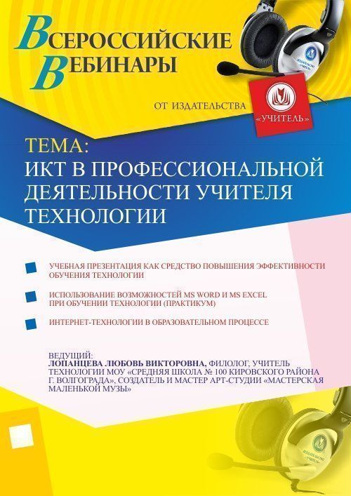 Приглашаем учителей, методистов принять участие в offline-вебинаре «ИКТ в профессиональной деятельности учителя технологии».