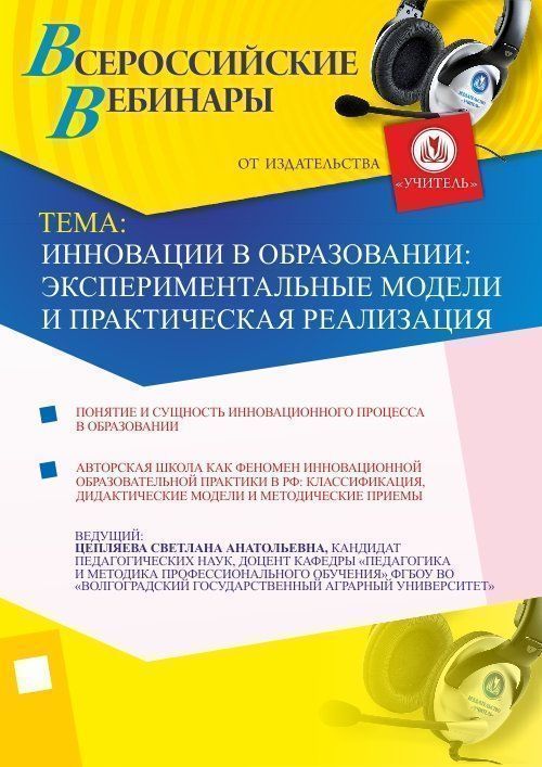 Приглашаем педагогов и специалистов среднего профессионального образования; педагогов и специалистов дополнительного профессионального образования; специалистов, не имеющих педагогического образования; студентов педагогических вузов и ссузов принять участие в offline-вебинаре «Инновации в образовании: экспериментальные модели и практическая реализация».