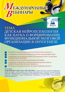 Международный вебинар Детская нейропсихология как наука о формировании функциональной мозговой организации в онтогенезе