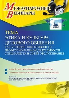 - Курс Международный вебинар Этика и культура делового общения как условие эффективности профессиональной деятельности специалиста в сфере обслуживания | Маркетплейс онлайн образования Edwica
