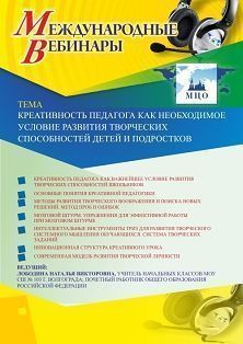 Международный вебинар Креативность педагога как необходимое условие развития творческих способностей детей и подростков