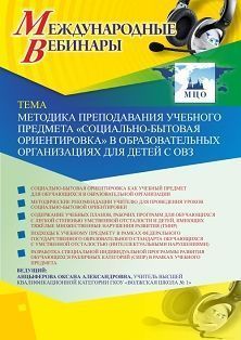 Международный вебинар Методика преподавания учебного предмета “Социально-бытовая ориентировка” в образовательных организациях для детей с ОВЗ