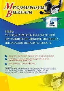 Международный вебинар "Методика работы над чистотой звучания речи: дикция, мелодика, интонация, выразительность"