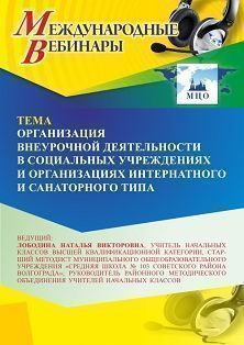 Международный вебинар Организация внеурочной деятельности в социальных учреждениях и организациях интернатного и санаторного типа