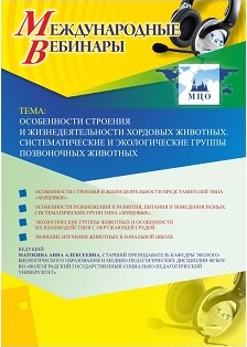 Международный вебинар "Особенности строения и жизнедеятельности хордовых животных. Систематические и экологические группы позвоночных животных"
