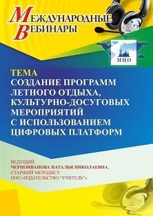 Международный вебинар Создание программ летного отдыха, культурно-досуговых мероприятий с использованием цифровых платформ
