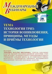 Международный вебинар Технология ТРИЗ: история возникновения, принципы, методы и приёмы технологии