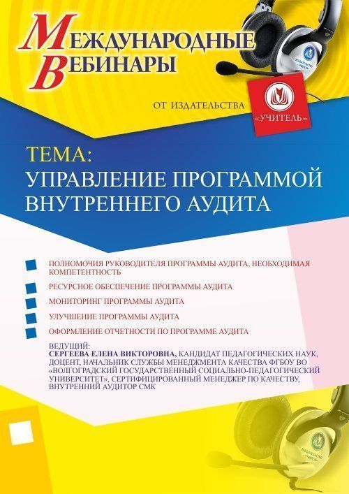 Приглашаем директоров, руководителей, заведующих, заместителей руководителя, методистов принять участие в offline-вебинаре «Управление программой внутреннего аудита».