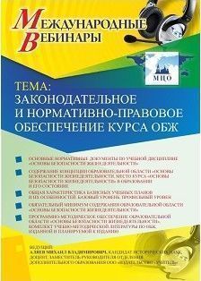 Международный вебинар "Законодательное и нормативно-правовое обеспечение курса ОБЖ"