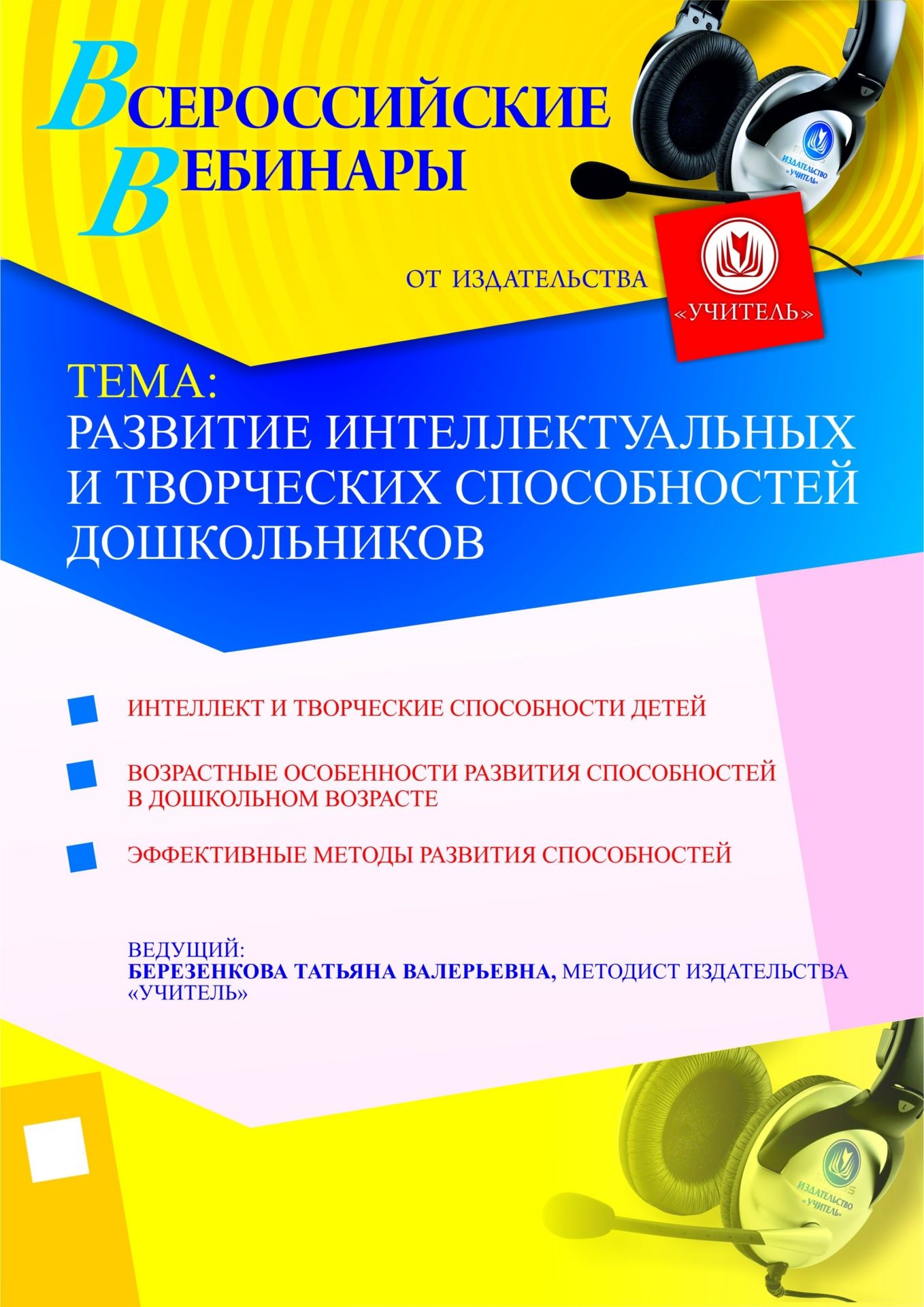 Приглашаем воспитателей ДОО, педагогов-психологов, педагогов дополнительного образования, методистов, старших воспитателей, заведующих ДОО, родителей принять участие в offline-вебинаре "Развитие интеллектуальных и творческих способностей дошкольников".