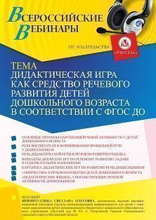 Вебинар Дидактическая игра как средство речевого развития детей дошкольного возраста в соответствии с ФГОС ДО