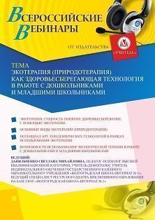 Вебинар Экотерапия (природотерапия) как здоровьесберегающая технология в работе с дошкольниками и младшими школьниками