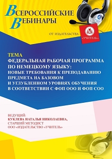 Вебинар Федеральная рабочая программа по немецкому языку: новые требования к преподаванию предмета на базовом и углубленном уровнях обучения в соответствии с ФОП ООО и ФОП СОО