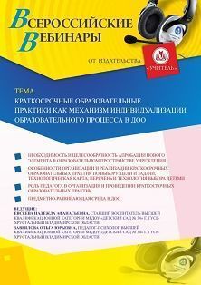 Вебинар Краткосрочные образовательные практики как механизм индивидуализации образовательного процесса в ДОО