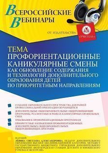 Вебинар Профориентационные каникулярные смены как обновление содержания и технологий дополнительного образования детей по приоритетным направлениям