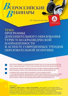 Вебинар Программы дополнительного образования туристско-краеведческой направленности в аспекте современных трендов образовательной политики