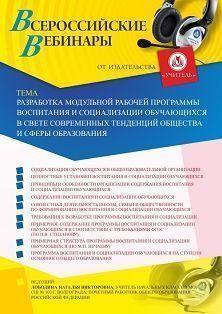 Вебинар Разработка модульной рабочей программы воспитания и социализации обучающихся в свете современных тенденций общества и сферы образования