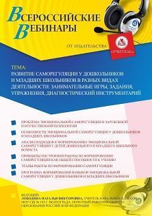 Вебинар Развитие саморегуляции у дошкольников и младших школьников в разных видах деятельности: занимательные игры, задания, упражнения, диагностический инструментарий
