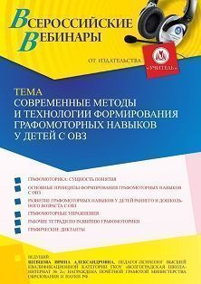 Вебинар Современные методы и технологии формирования графомоторных навыков у детей с ОВЗ