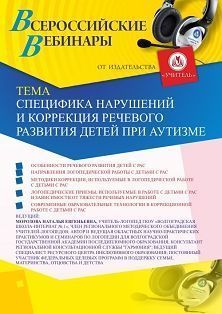 Вебинар Специфика нарушений и коррекция речевого развития детей при аутизме