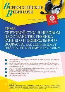 Вебинар Световой стол в игровом пространстве ребёнка раннего и дошкольного возраста: как сделать досуг ребёнка интересным и полезным