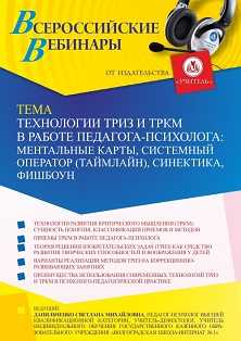 Вебинар Технологии ТРИЗ и ТРКМ в работе педагога-психолога: ментальные карты, системный оператор (таймлайн), синектика, фишбоун